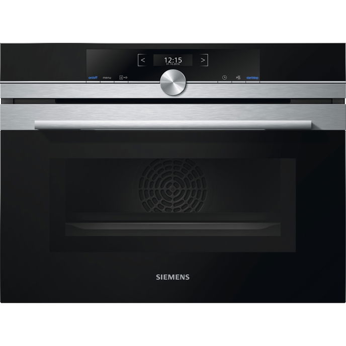 Siemens CM633GBS1SSiemens CM633GBS1S är en integrerad ugn med en volym på 45 liter. Den har varmluft, matlagningstermometer och rostfritt stål design. Ugnen har en ångfunktion och är utrustad med barnlås på dörren.